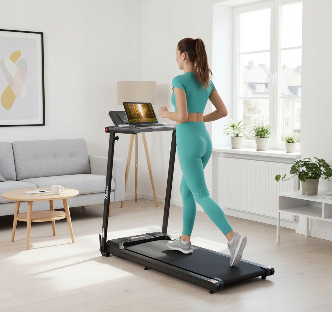 Бігова доріжка має велику стільницю для аксесуарів розміром 55 x 25 см, яка має безліч розкладних вставок для телефону, планшета, ноутбука або навіть книги!